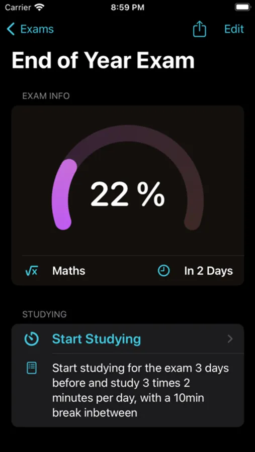 Whether you're studying for a standardized test, final exams, or just want to stay on top of your coursework, ExamEase has got you covered. Our app offers a range of features, including reminders, planning your preparation time and progress tracking, so you can improve your knowledge and skills quickly and efficiently.