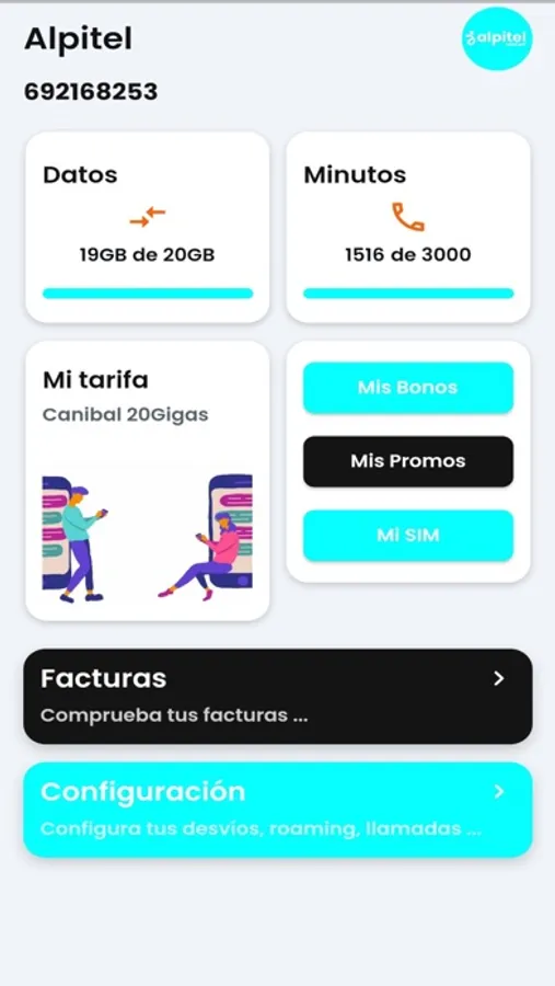 - Controla el consumo de datos, voz y sms.