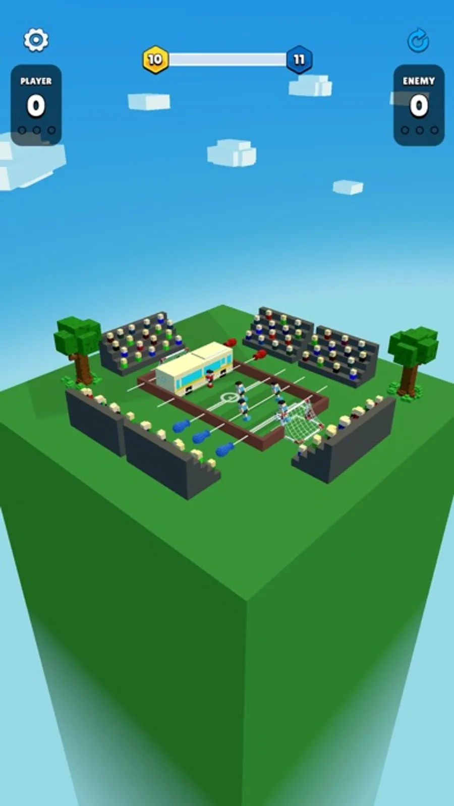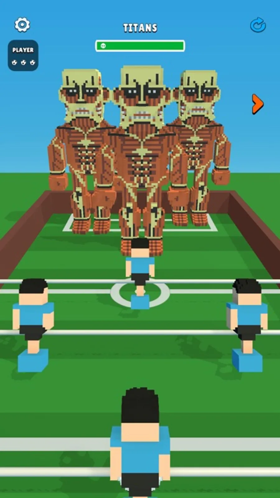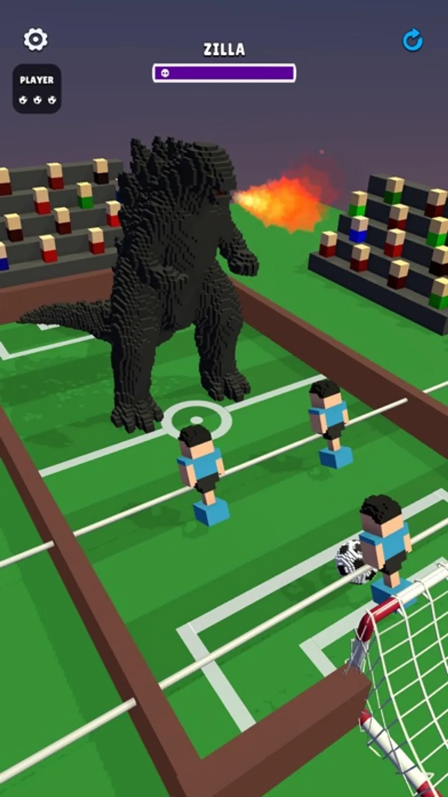 Demolishing voxel characters is satisfying. Each of them is different, some are harder to break while destroying others may take longer. Hit the the ball subsequently to get the fire shoot and give more damage! Also beat enemy teams in classic table football matches. Difficulty increases as you progress through the levels and play matches against better teams! Will you be able to beat all the teams and be the champion?