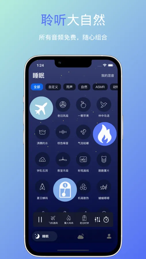 •混音功能:六十余种白噪音随意组合,搭配出属于你自己的睡眠声音