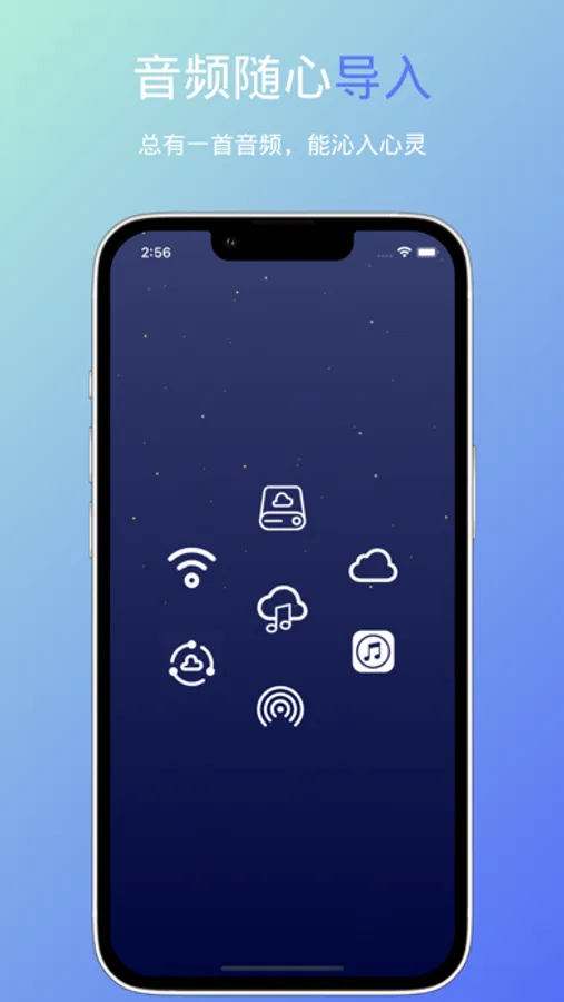 •导入音频:提供的白噪音无法满足你的需求?打破禁锢,提供多种导入方式,导入你喜欢的白噪音或者音乐,创造属于你的专属混音