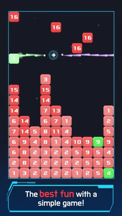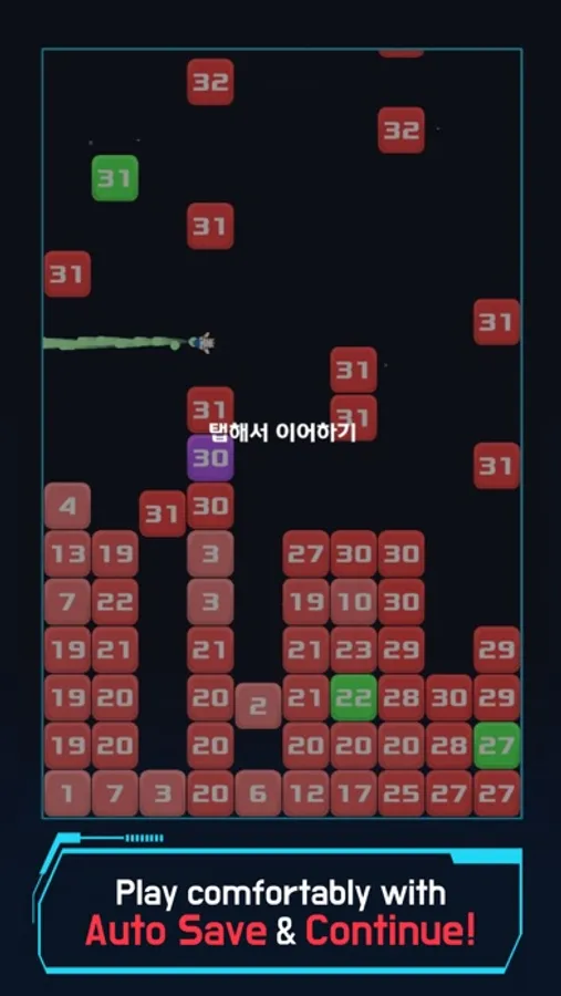 ▶ Invaders are represented by blocks, and the number written on the block is the enemy's health. Destroy the blocks as quickly as possible while avoiding collisions with enemies!