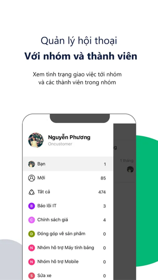 - Xem, trả lời tin nhắn, giao hội thoại cho agent, quản lý danh sách hội thoại mọi lúc, mọi nơi.