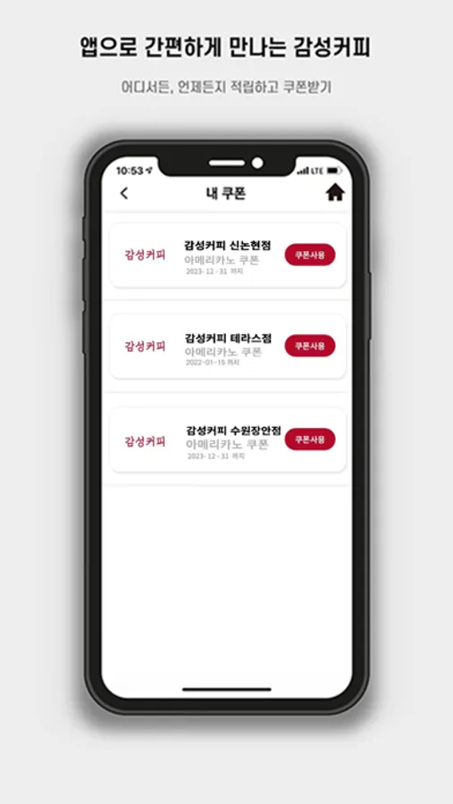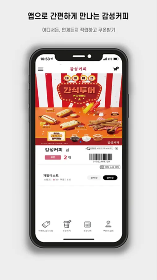 감성커피 주문앱으로서 회원 가입된 감성커피 매장에 주문할 수 있습니다.