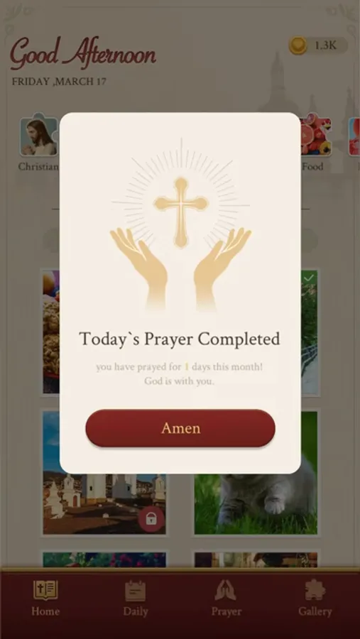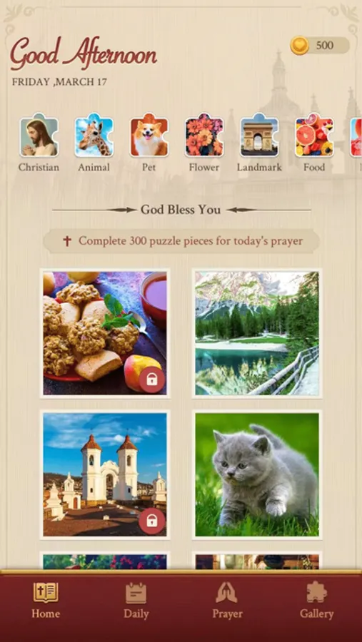 Our carefully curated library boasts over a thousand stunning images, spread across 12 unique categories. To keep you engaged and inspired, we add new images daily, ensuring there's always something fresh to explore. As you complete your daily puzzle quota, you'll unlock the ability to engage in prayer, fostering a deeper spiritual connection.
