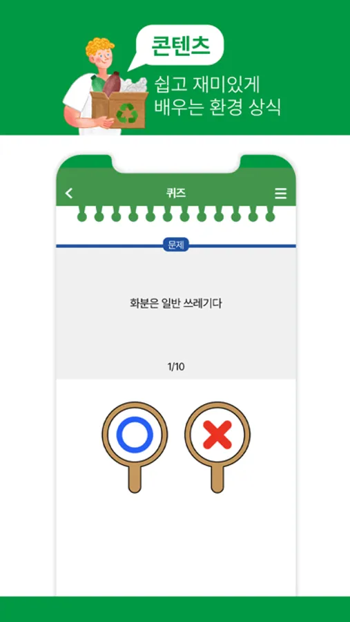 알쏭달쏭 환경 상식을 쉽고 재미있게 배울 수 있도록 퀴즈, 웹툰, 영상, 미니게임 등이 구성되어 있습니다. 선별된 환경 뉴스도 업로드 되고 있습니다.
