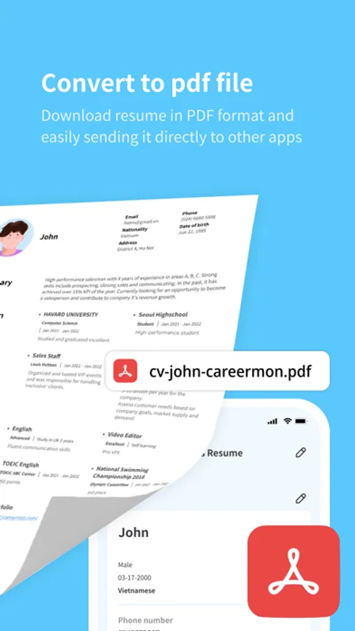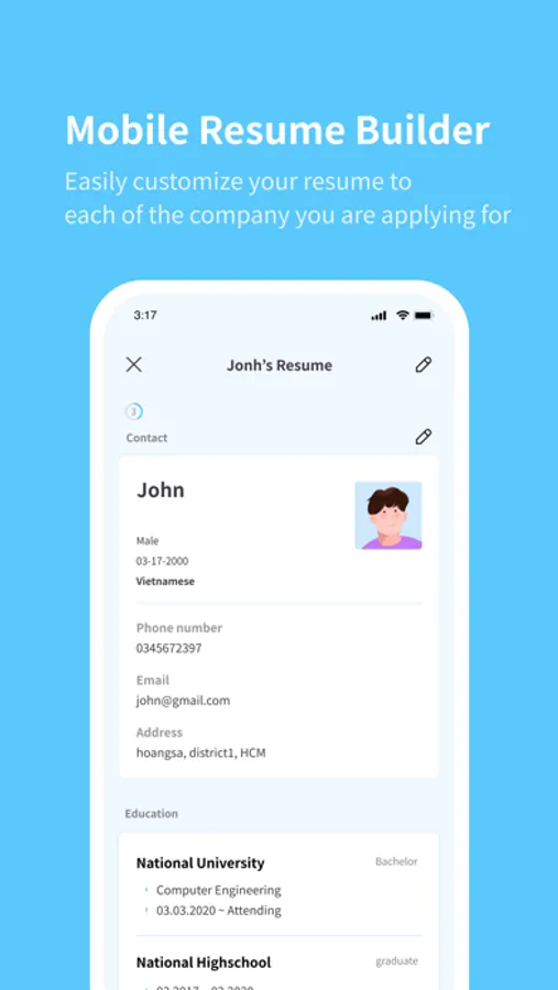 Easily and conveniently create your professional resume anytime, anywhere, using your mobile phone.