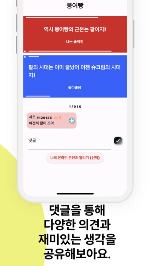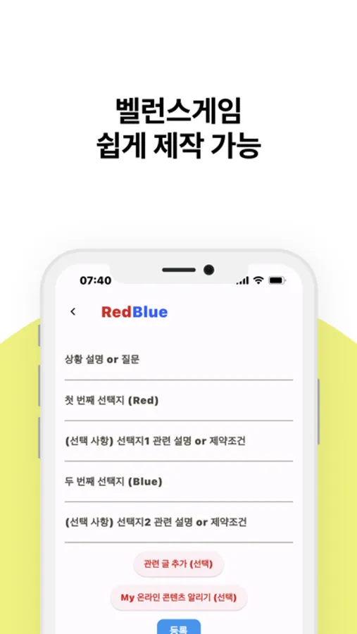 : 벨런스게임을 진행하다 보면 보이실텐데요. 질문이나 댓글을 작성할 때 "나의 온라인 컨텐츠 알리기" 기능이 있습니다. 밸런스게임을 통해 자신의 콘텐츠에 대한 무료 광고를 해보세요. 단순 홍보와 관련 컨텐츠 이렇게 2가지로 참여가 가능합니다. 요즘 많은 분들이 유튜브, 블로그, 인스타그램, 온라인스토어 등과 같은 온라인 활동을 하는데요. 생각보다 방문자가 적어 속상하죠. 재미있고, 유익한 질문과 함께 알리기 기능을 사용해 보세요. 많은 사람들이 주목할 거에요.