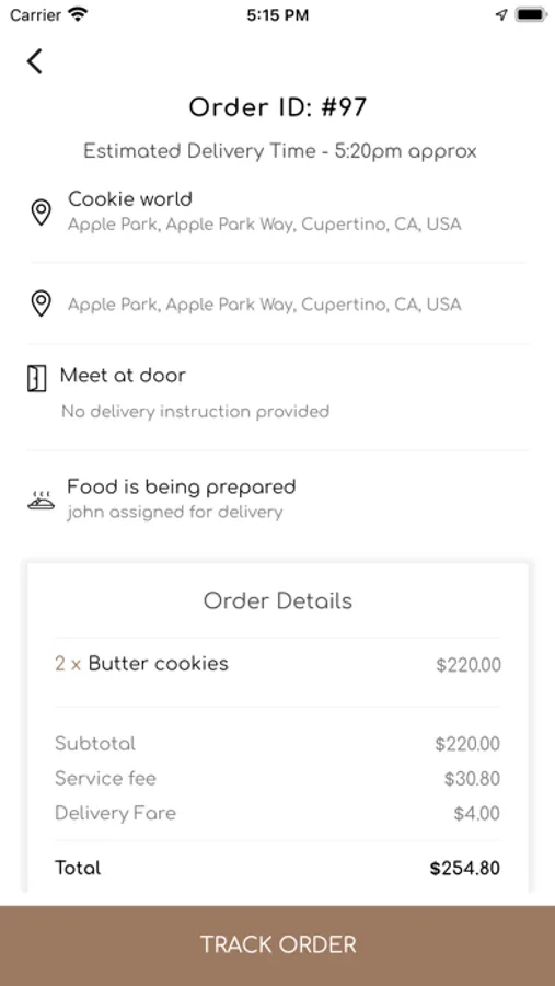 - Live Tracking: Stay in the know on your order. Follow your order from the time its placed, prepared,