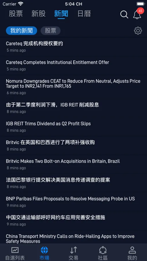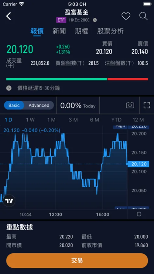 6. Gain market insights by interactive financial chartings which supports over 50 indicators for FREE and adopt technical analysis by investing specialists.