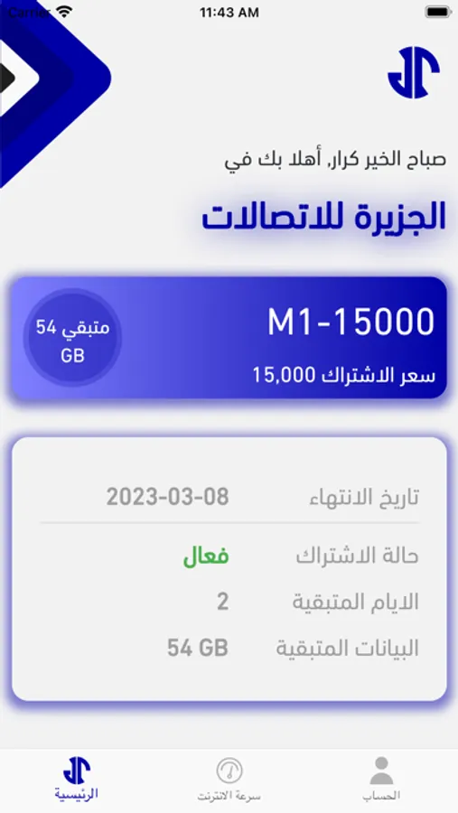 تطبيق الجزيرة للاتصالات الرسمي الخاص بمشتركي الانترنت لمعرفة تفاصيل اشتراكهم الحالي