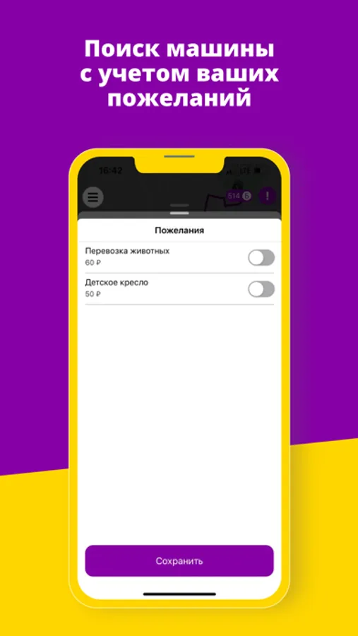 - Поиск машины с учетом тарифа и ваших пожеланий (детское кресло, помощь на дороге и т.д.);