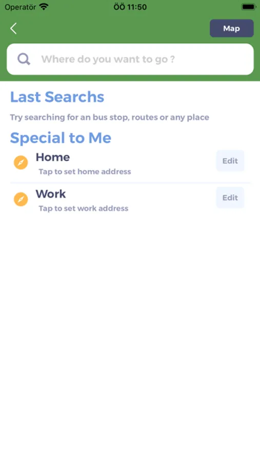 The application will recognize your current location as your home location. If you want to start from another location, you can enter another location as your home location. After entering the destination location, the fastest route will be displayed on the screen with information on stops, travel times and ticket prices.