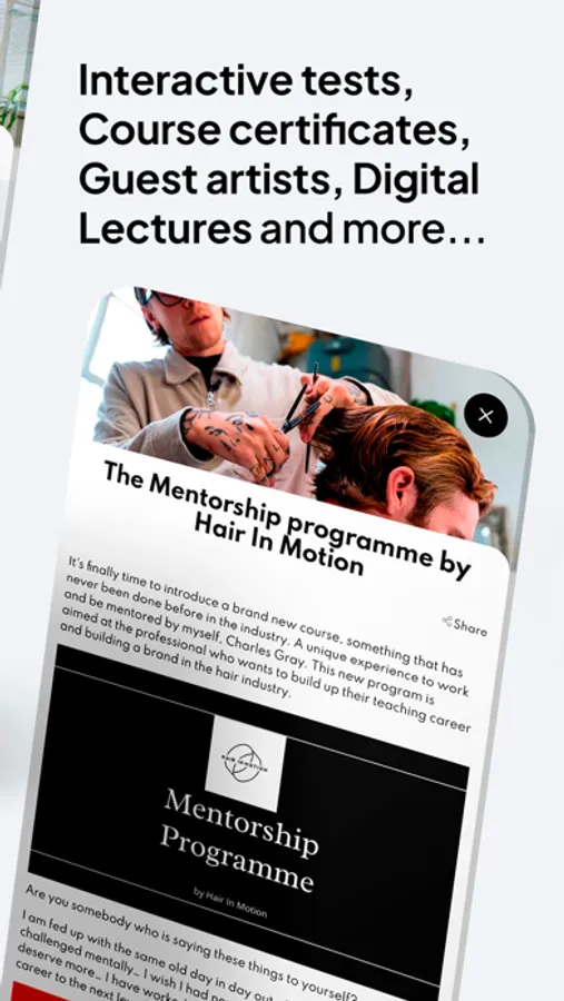You will be able to learn from exclusive content created by leading industry experts, that will allow you some insight in what the hair industry is all about. Learn and enjoy at your own pace, whenever and wherever you want with interactive tests, Course certificates, Guest artists, Digital Lectures and more.