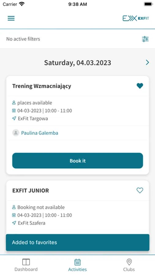 Uzyskaj stały wgląd do swojego profilu w klubie. Dzięki aplikacji ‘ExFit’, możesz w każdej chwili: