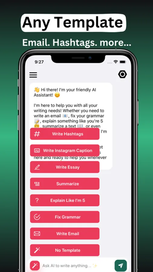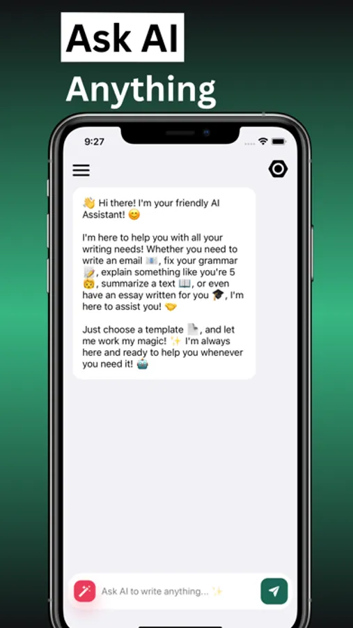 Introducing AI Assistant, the ultimate AI writing assistant! With our app, you can chat with a cutting-edge AI chatbot, giving you the power to write anything from emails to essays with ease.