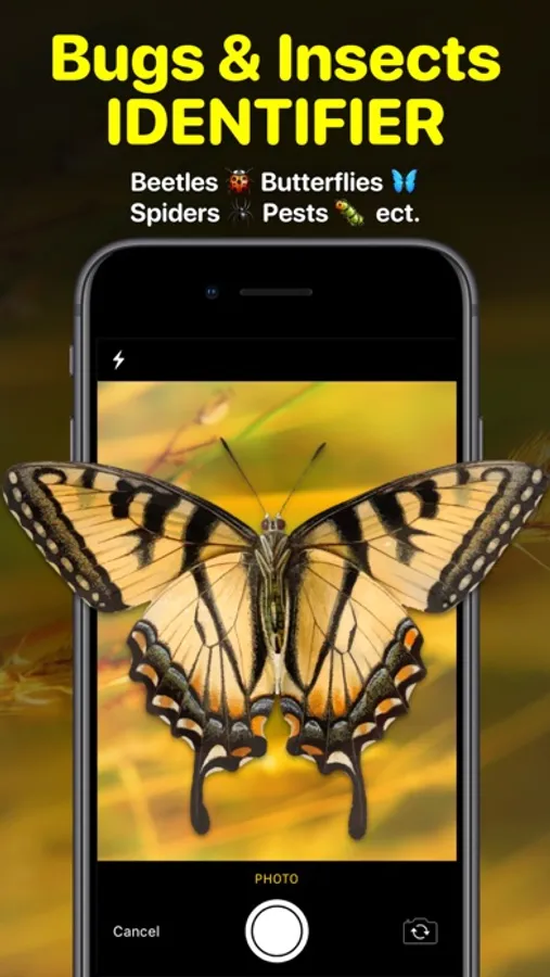 Would you like to know what bug or insect is it? No problem! Use the Bug Identifier App - Insect ID app to identify by photo more than 6,000 classes of insects and other terrestrial invertebrates, such as: Bugs, Butterflies, Beetles, Moths, Spiders, Ants, Bees, Wasps, Weevils, Termites, Cockroaches, Centipedes, Multipedes, Dragonflies and more from all over the world. Discover the world of insects and other invertebrates around you with the Bug Identifier App - Insect ID app!