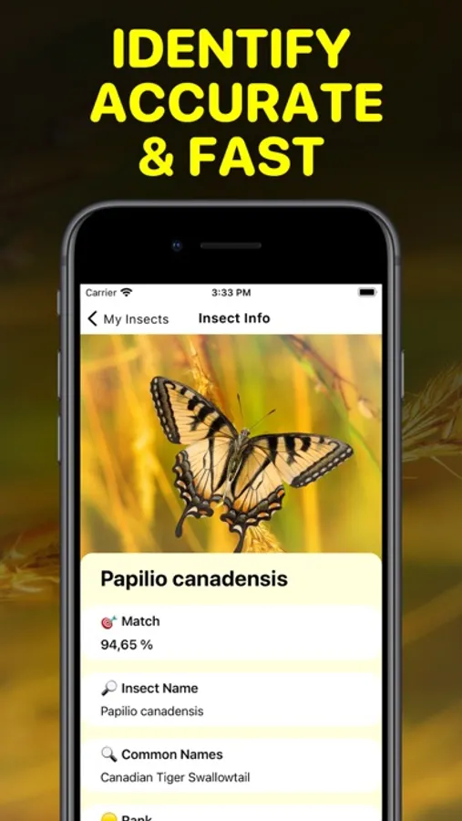 Simply take a photo or select photo from your gallery and get an accurate result in just seconds with detailed information about your identified insect, such as: probability, insect name, description, rank, taxonomy, similar images and more, but may vary. App can identify a wide variety of insects - more than 6,000 classes of insects from all over the world, from common household pests like ants and cockroaches, to more exotic species like butterflies and beetles, and others.