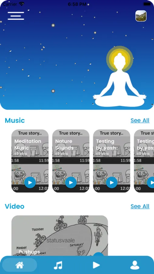 Our app is designed for self -meditation. We’re providing different-different types of music’s in our app, so try your favourite one. And feel free from your routine stress.