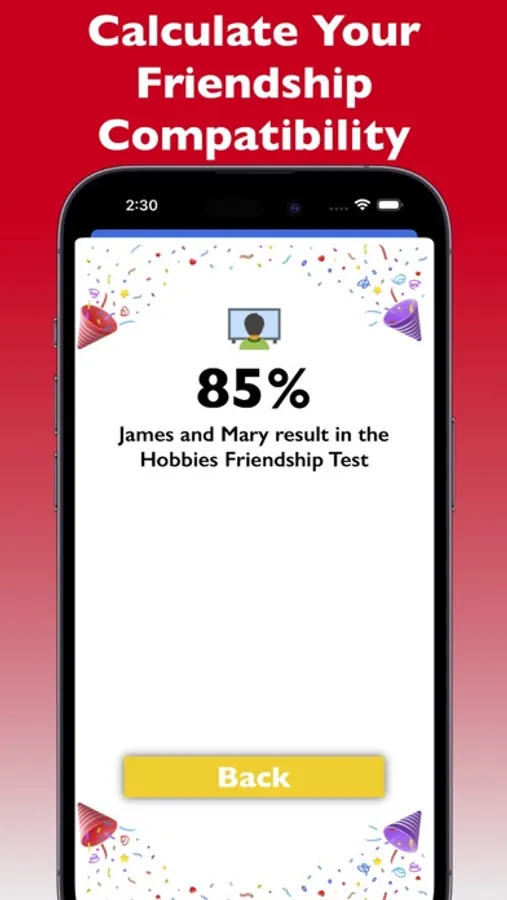 - Share your results with your friends and compare your compatibility scores
