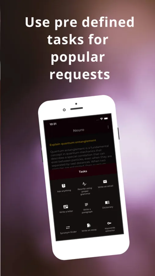 Using Neuro - GPT powered AI is easy. Simply type or speak your question; our AI will use its knowledge base to analyze your query and provide you with the best possible answer. It can even provide multiple answers to help you explore different perspectives.