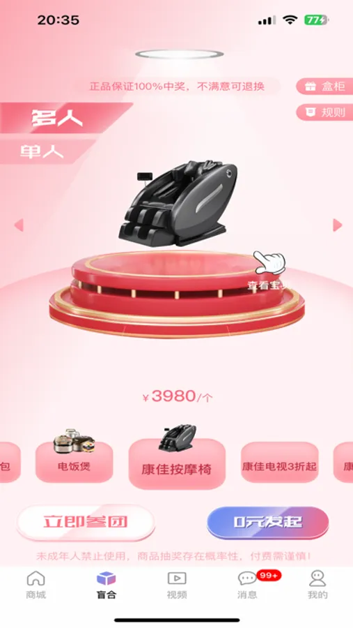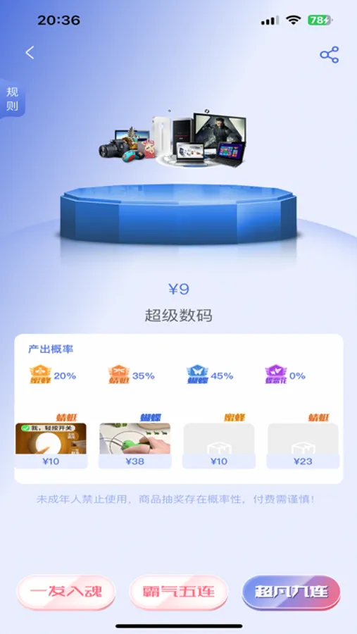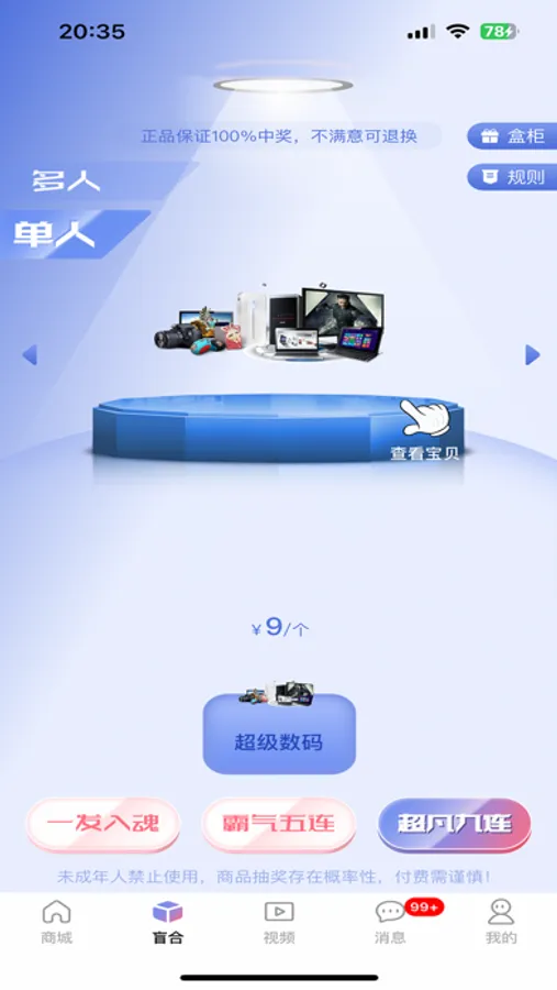 蝶潮尚品是一块聚集各类商品,以盲盒形式销售的app。