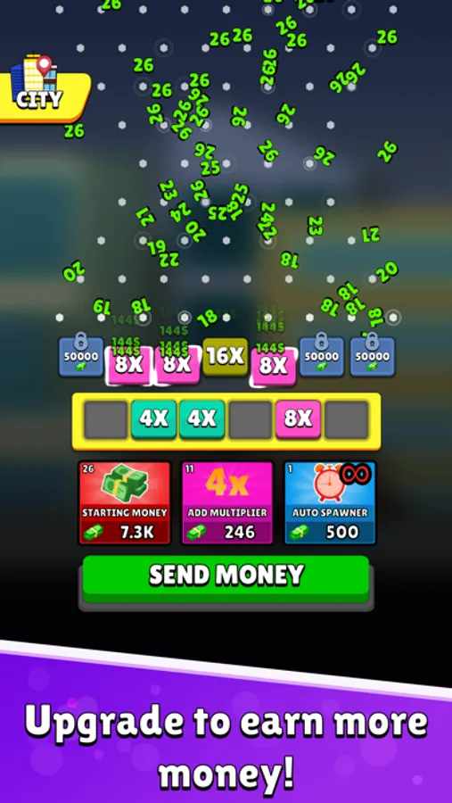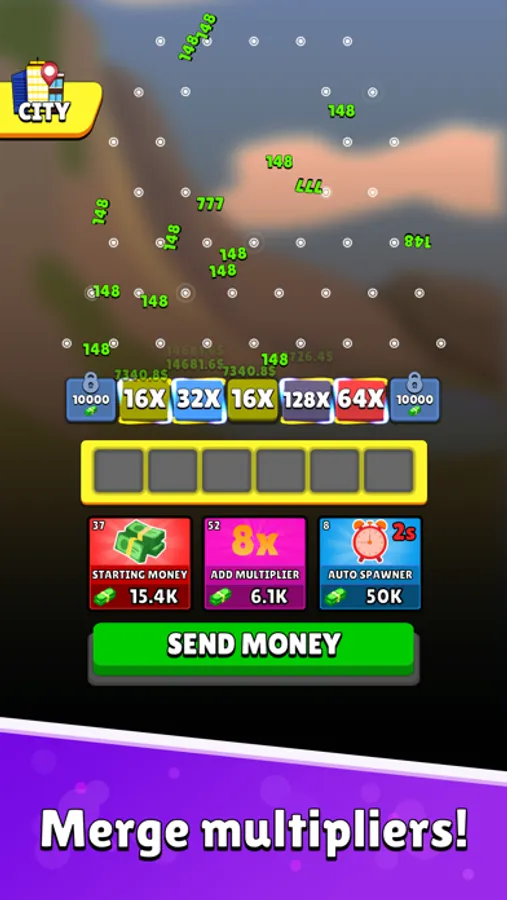 In Merge Income, your objective is simple yet intriguing: send numbers from the top of the screen by tapping the green button and watch as they make their way to the base. But that's not all – each number that reaches the base is multiplied by the products of 2 with merge mechanics!