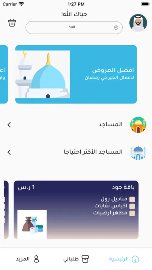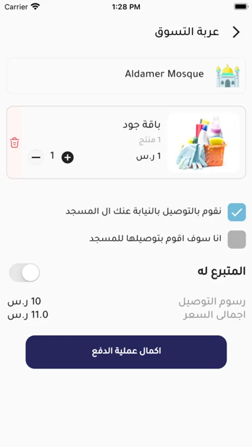 تطبيق الكتروني يقوم بتوفير باقات من مواد التنظيف بأسعار رمزية للعملاء للمساهمة بها لبيوت الله إكراماً لها نظراً لقدسيتها ومكانتها الخاصة لدى المسلمين للمحافظة على نظافتها بشكل دائم.