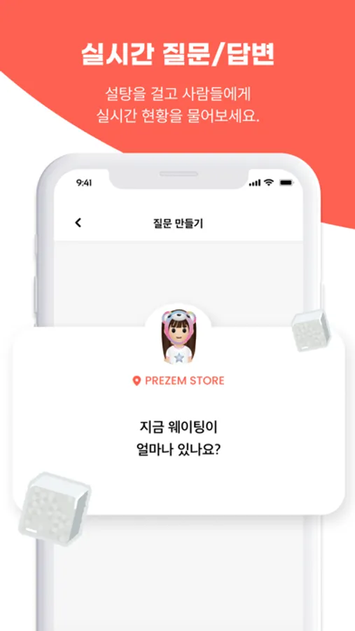 1. 설탕을 뿌려 위치기반 질문을 보내보세요. 현재 그 위치에 있는 프렌디에게 알림이 간답니다. 설탕을 많이 뿌릴 수록 많은 답변을 받을 확률이 올라가요!