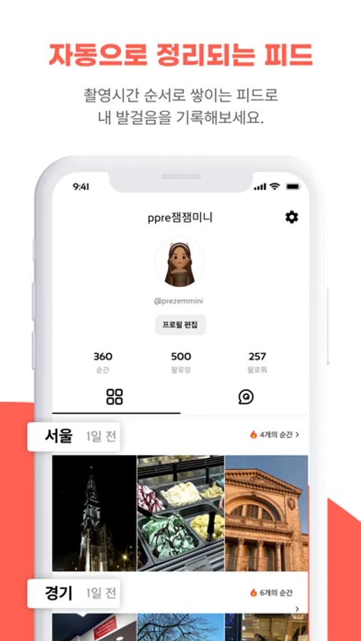 2. 프레잼은 프렌디들이 직접 경험한 순간들만 모아서 보여줘요. 정보가 불분명한 사진이나 퍼 온 사진은 지양해요. 갤러리에서 직접 찍은 사진을 업로드 해보세요! 실제 촬영시간 순과 지역별로 자동 정렬되는 피드가 추억이 담긴 나만의 프로필을 만들어줄거예요.