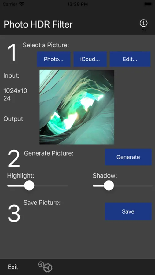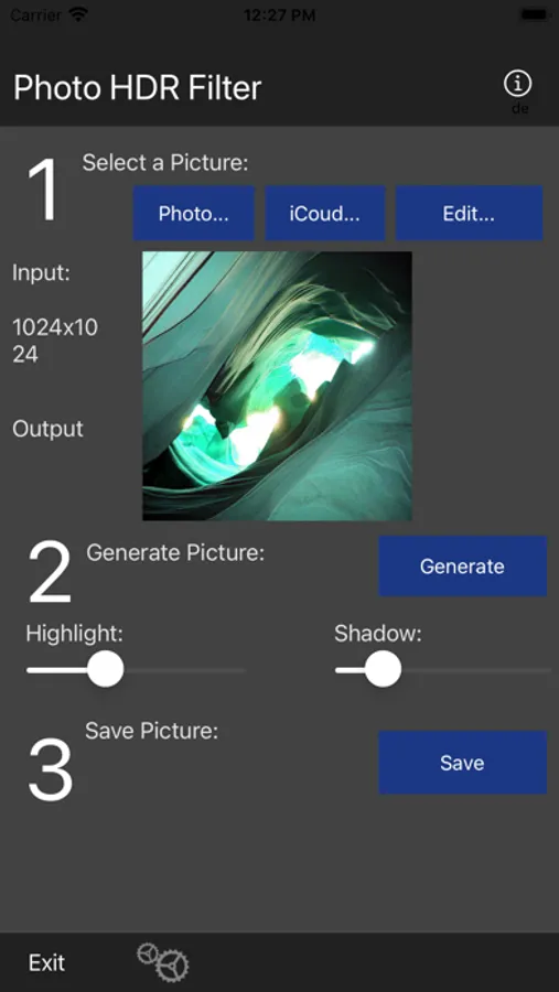HDR (High Dynamic Range) enhances your images. To do this, dark areas are brightened and light areas are slightly darkened. You have two sliders and you can adjust that precisely. You only need one image, so not a whole series of exposures. Before the actual process, you can edit the image, remove brightness, contrast, color, sharpness, noise. You can save the finished picture as a copy in the photo album.