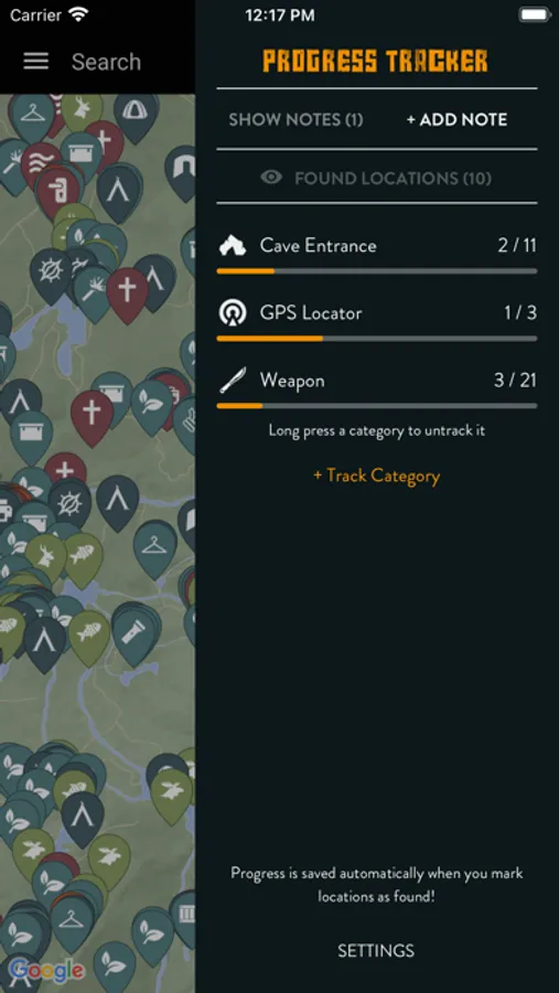 • Progress Tracker - mark locations as found and track the progress of your collectables.