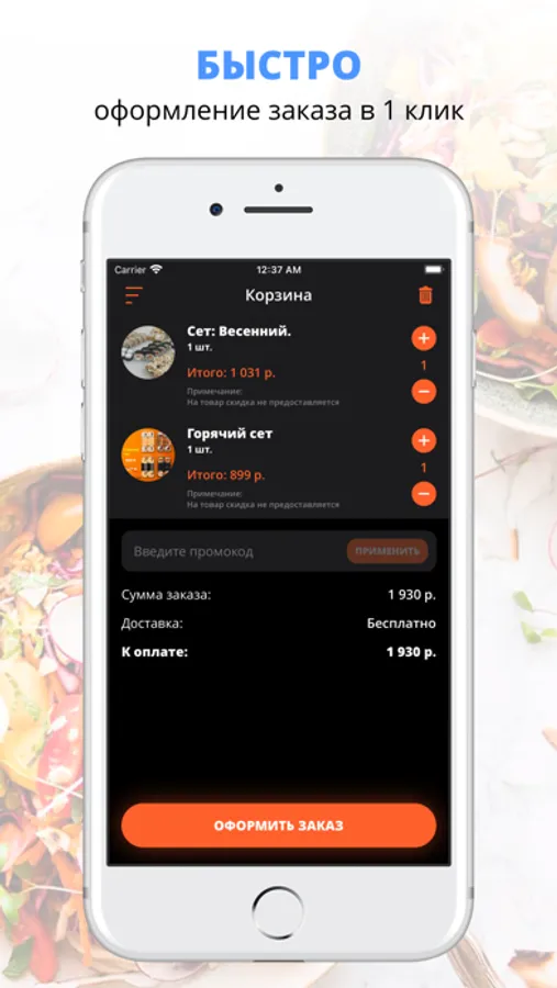 Скачивайте наше приложение, оформляйте заказ и наслаждайтесь любимой едой, где бы Вы ни были! Приятного аппетита!