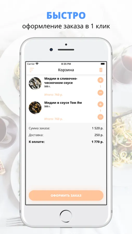 Установите приложение, выберите любимые блюда из нашего меню и оформите заказ всего в несколько кликов! С помощью мобильного приложения сможете получать и копить бонусы, отслеживать статус заказа, выбрать удобный способ оплаты и быть в курсе всех акций и новостей.