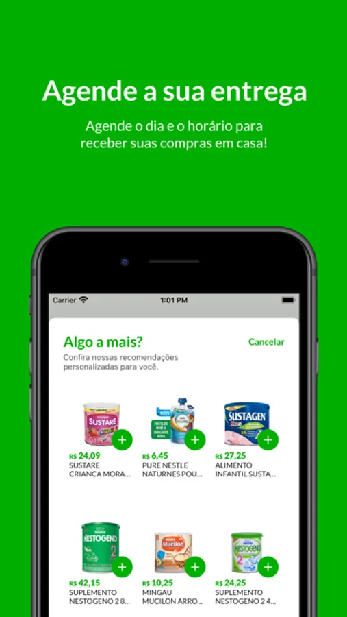 • Adicionar produtos no seu carrinho com um simples tocar e arrastar.