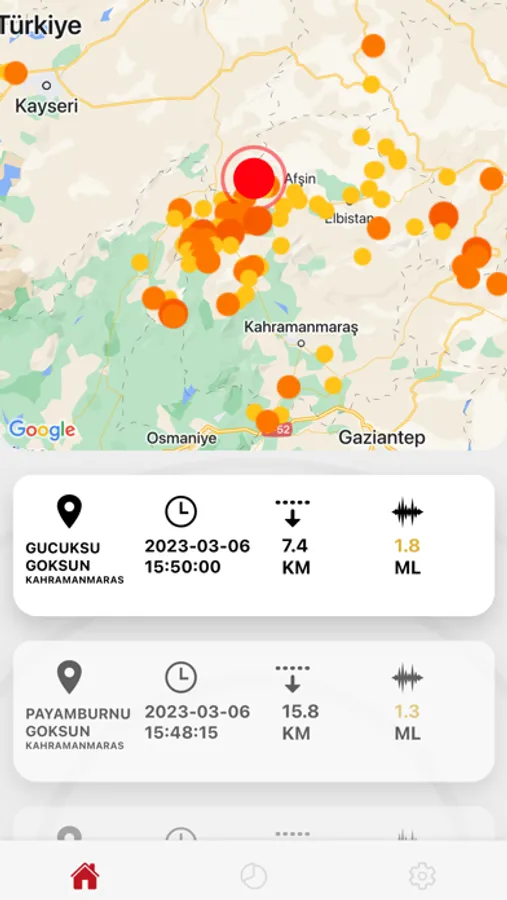 Depremleri takip etmek isteyen kullanıcılar için oldukça kullanışlı bir uygulamadır. Uygulamayı indirdikten sonra bildirimleri açarak, kullanıcı tercihli filtreleme ile deprem olduğu anda tercihlerine uygun şekilde bilgilendirilir.