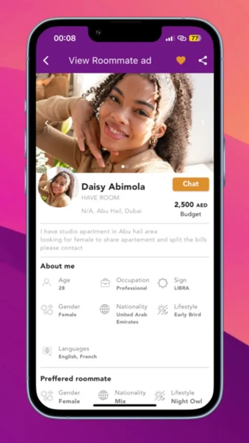 habits, and preferences, to find someone who matches your vibe and living preferences.