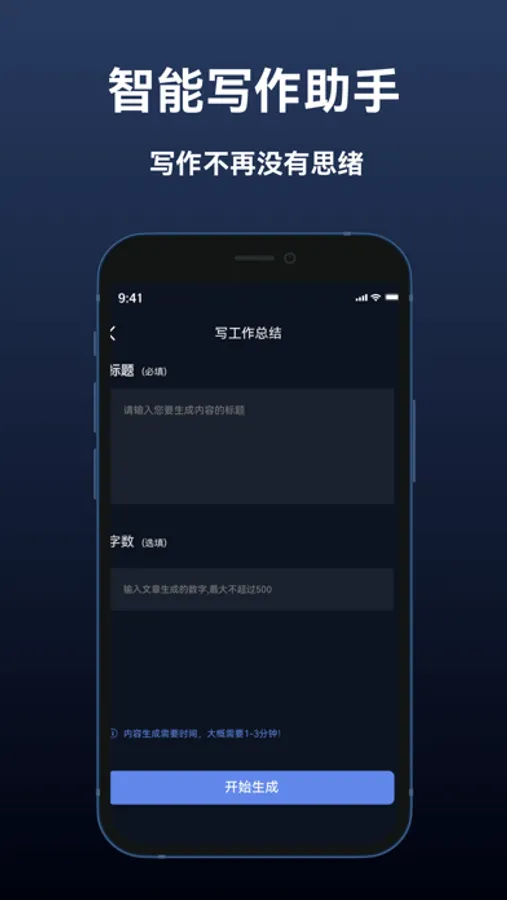 使用当前最先进的人工智能技术为你写作,写作范围不限于写工作总结、工作报告、会议材料、演讲稿、营销文案、作文等,为您提供写作思路、写作模板,素材收集,使你的写作更加轻松、愉悦。