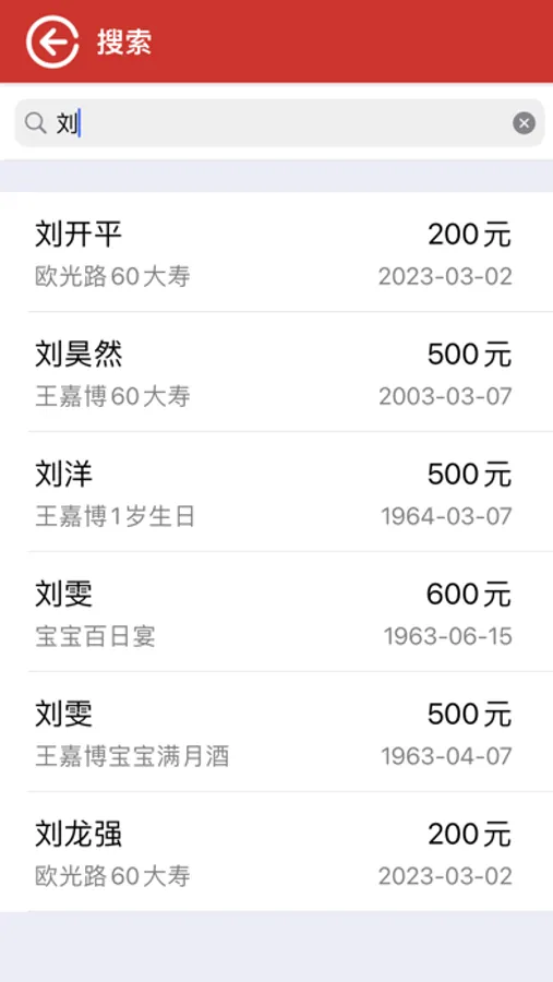 歷史喜宴舉辦情况一目了然,親朋禮金永久記錄.
