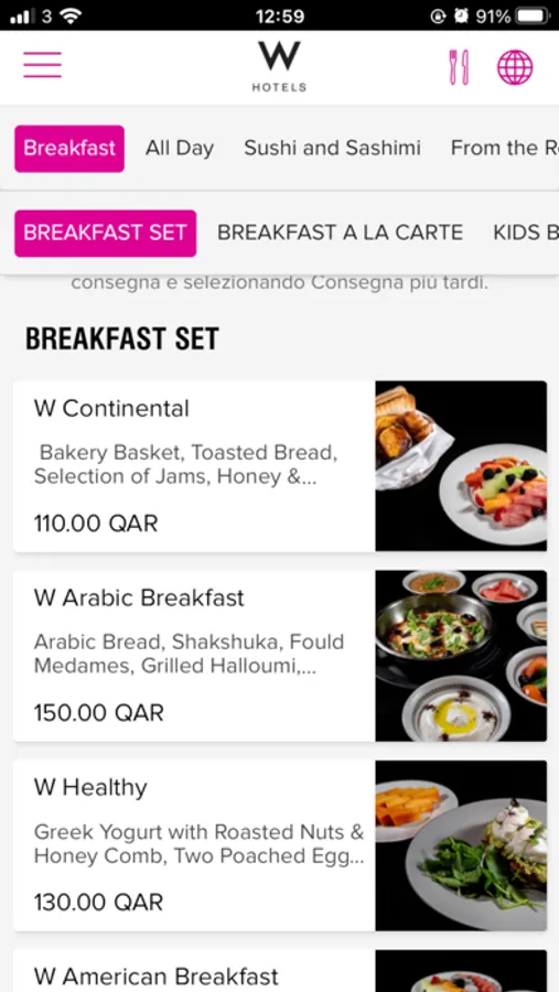 Order your food and have it delivered to wherever you are. Simply download the W Doha app, choose your favs, select the delivery time and pay with card or cash upon delivery