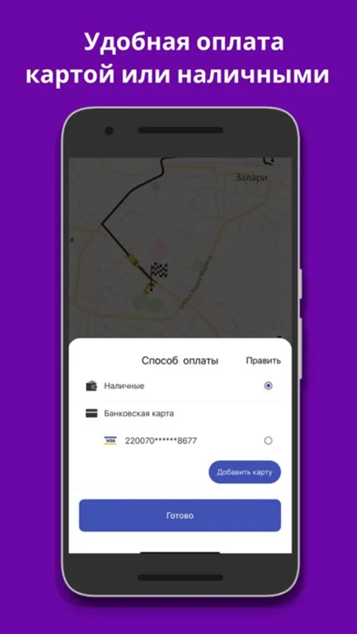 - Выбирать адрес на карте, вводить его вручную или выбирать из списка ранее использованных адресов