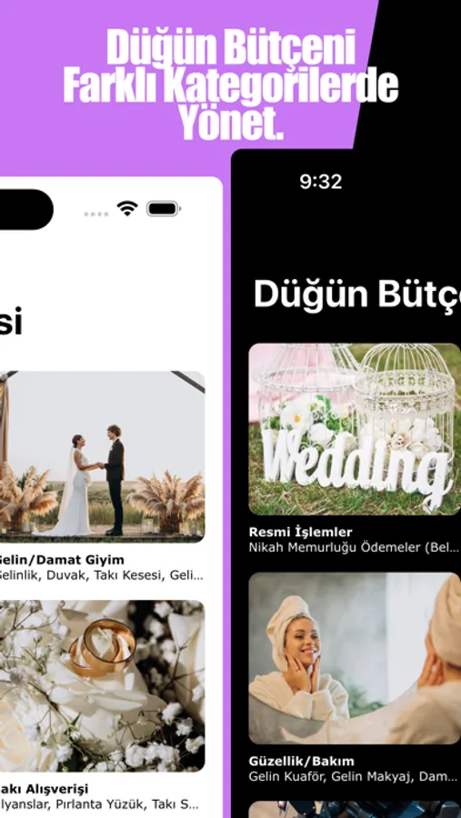 2. Düğün Bütçesi: Farklı kategorilerde düğün bütçenizi kontrol edebilirsiniz. Listelere ekleme ya da çıkarma yaparak listeleri özelleştirebilirsiniz. Dilerseniz yapmış olduğunuz listeleri paylaşabilir veya kaydedebilirsiniz.