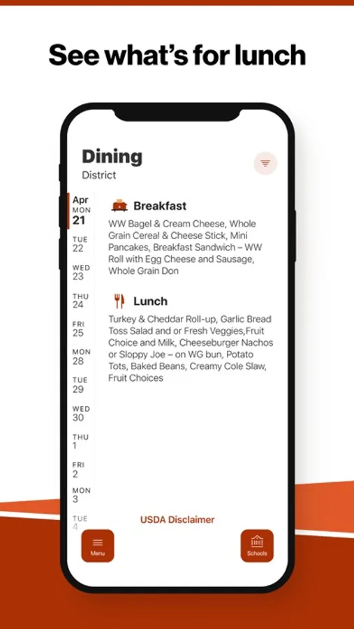 Within the dining section, you’ll find an easy to navigate, weekly menu, sorted by day and meal type.