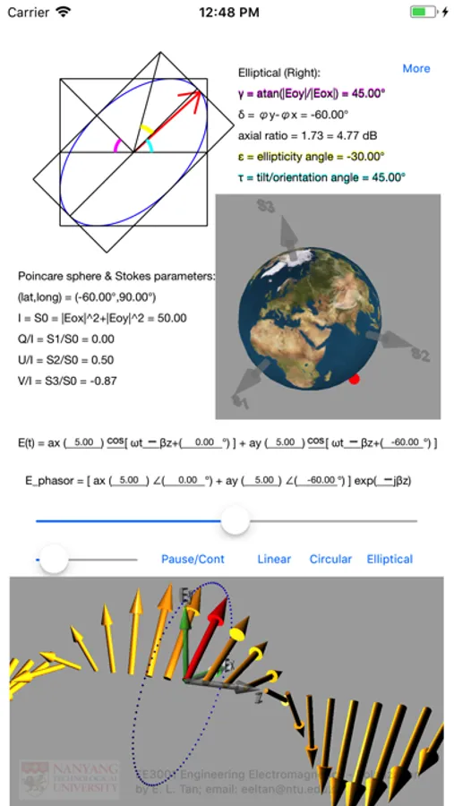 EMpolarization is an app to aid teaching and learning of electromagnetics (EM) using mobile devices on the topic of wave polarization. The app is designed to provide interactive visualization to help students better understand wave polarization concepts. Through the use of the app, various polarizations could be explained better with the aid of 2D and 3D animations. Users are allowed to input various wave parameters to see the change in real time in the polarization ellipse and/or handedness. More advanced topics such as polarization ellipse parameters, Poincare sphere and Stokes parameters are also presented. For more graphical interaction with fun, the polarization state is further presented as a point located on Poincare sphere that coincides with the earth globe. For more information, please refer to the article "Teaching and Learning Electromagnetic Polarization using Mobile Devices," IEEE Antennas and Propagation Magazine, vol. 60, no. 4, pp. 112-121, 2018.