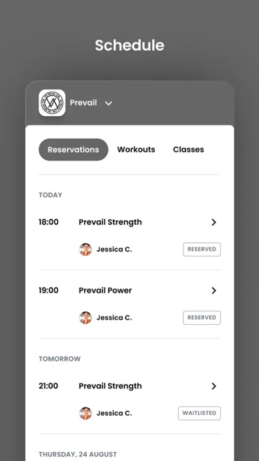 For members of The Prevail Gym to reserve their place in a class, sign up for gym events, and general account management like updating headshots and credit card on file.