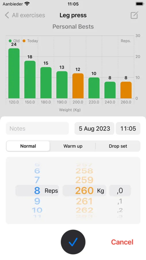 • Mark your sets: Easily differentiate your sets by marking them as warm-up or drop-set to keep them organized and track your progress more accurately.