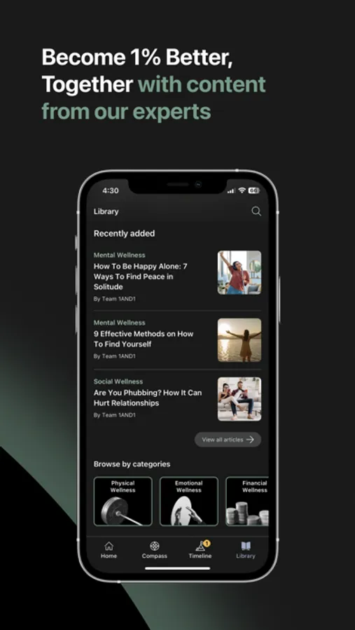 Our holistic approach to wellness covers all aspects of well-being, including emotional, spiritual, intellectual, social, financial, physical, and environmental health. We empower you to focus on committing to one habit at a time, so you can be 1% better each day and propel yourself forward towards success in your personal wellness journey.