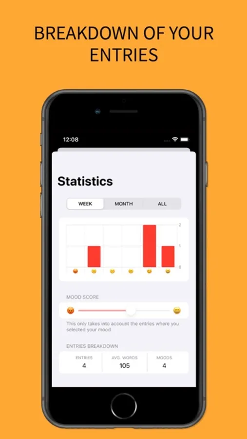 Journal offers mood tracking, allowing you to record how you're feeling each day. It also allows you to view detailed statistics about your mood breakdown and the number of entries you've made, filtered by week, month, or all time. This information can help you identify patterns in your emotions and behaviors, and make positive changes in your life.