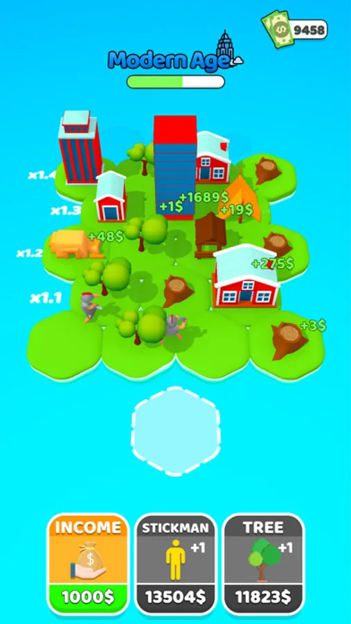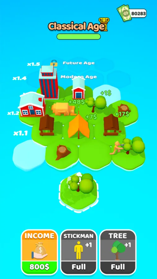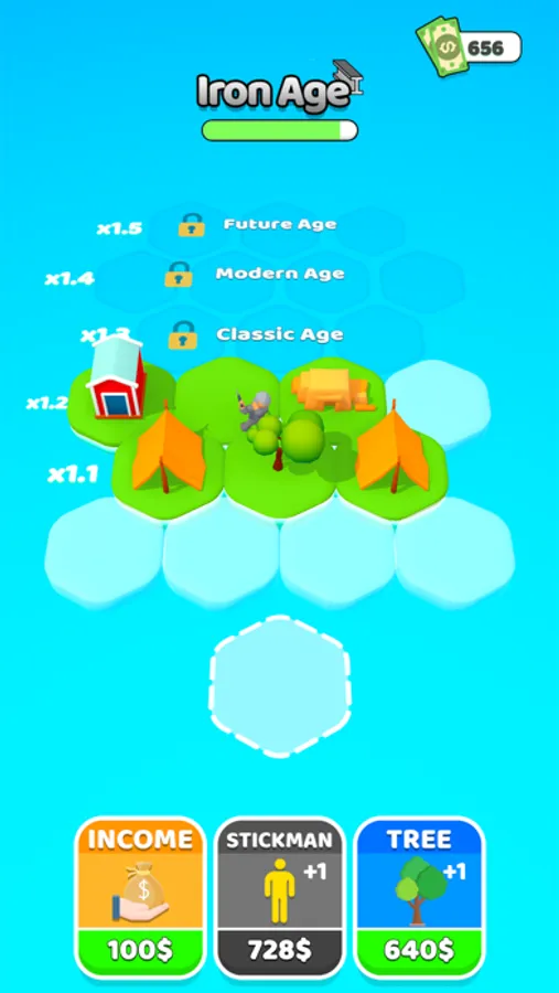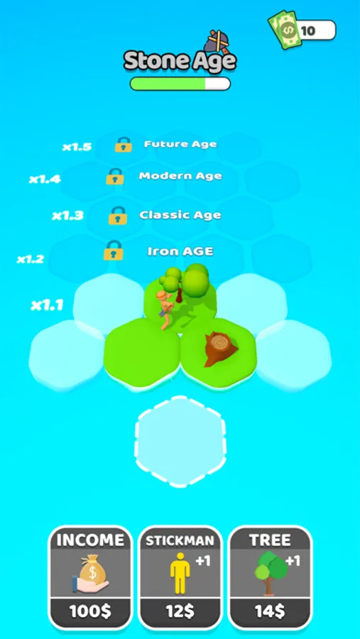 Start by adding a stickman and a tree. Merge each created new object and reach the next one. Discover new ages as you progress and try to reach the future!