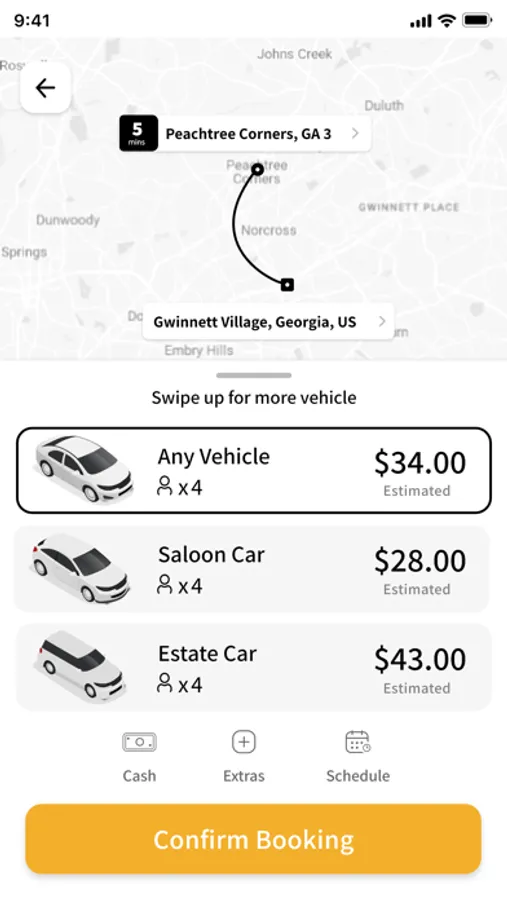 You can place the booking directly on our map, and see how many available cars there are nearby.